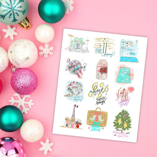 12 Days of Christmas - fun girly edition - pink, disco ball, Christmas print 8x10