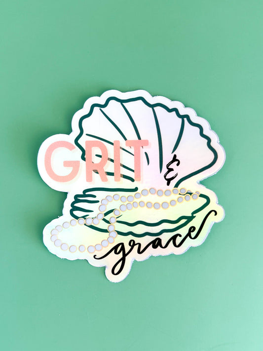 Grit and grace -pearl necklace oyster holographic sticker