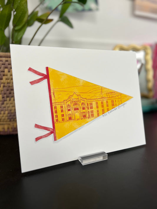 Lexington, VA- The Barracks Pennant Print, Virginia College, Lexington Art Print- Military Institute