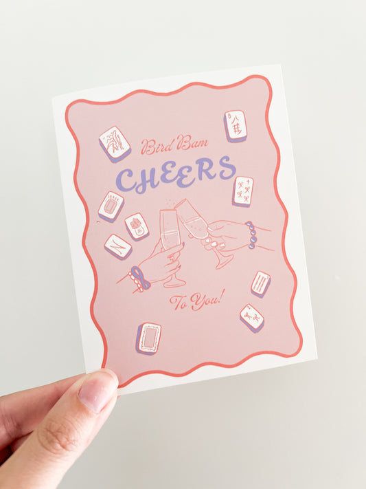 Mahjong Greeting Card | Bird Bam Cheers to You Card | Funny Mahjong Celebration Card