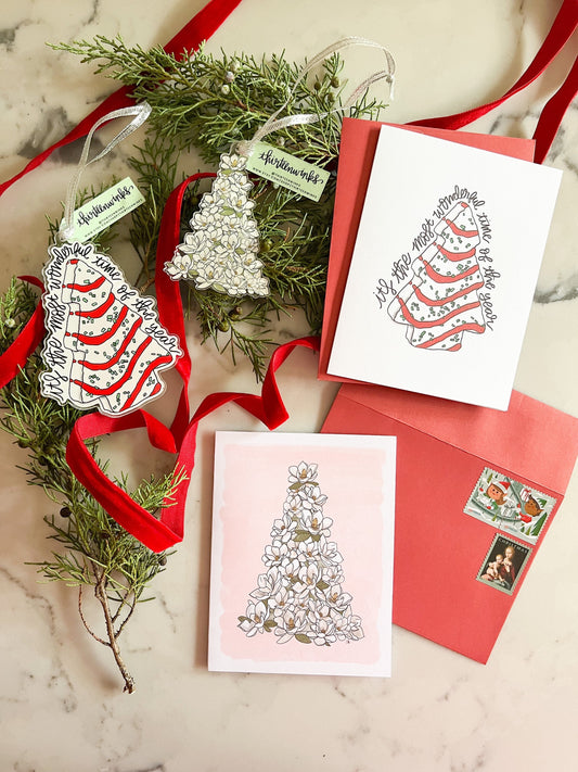 Magnolia Tree- Pink Christmas - Christmas Notecard