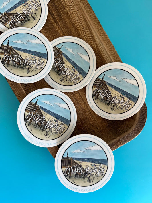 Outer Banks NC circle sticker - scrapbooking, rv sticker, souvenir OBX