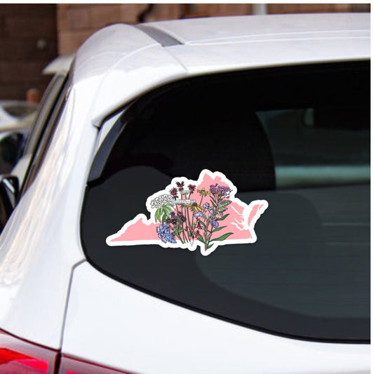 Virginia (VA) wildflower sticker Large - bumper sticker- car sticker -pink