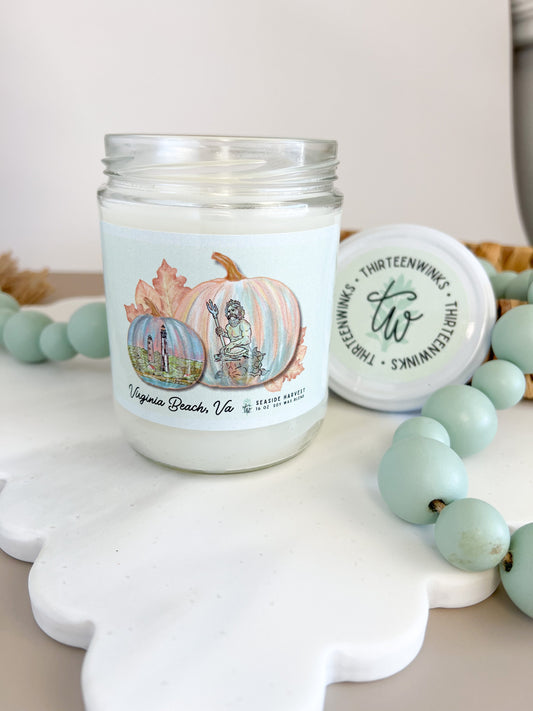 Seaside Harvest Candle - King Neptune and Cape Henry Lighthouse Pumpkin Candle