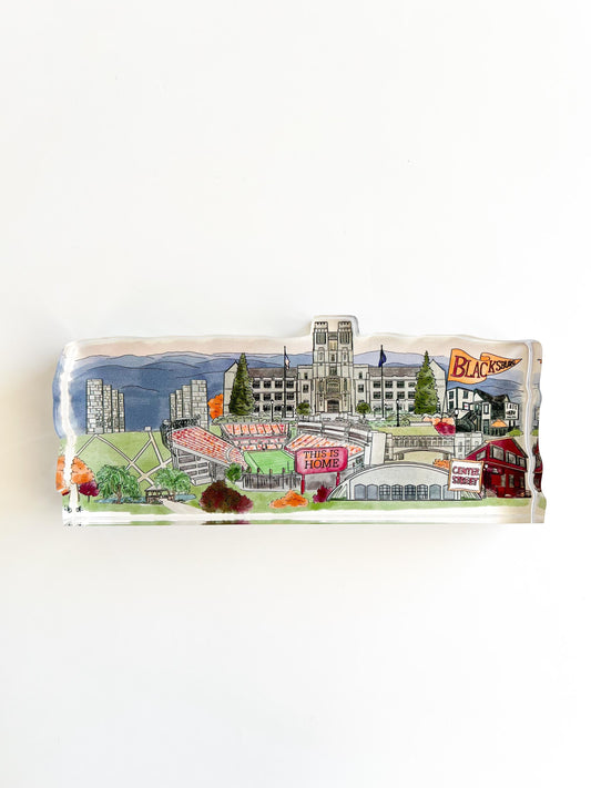 Blacksburg Virginia Skyline Landmark Acrylic Shelf Sitter – Chic 3D Display Piece, 0.75" Thick 8.5x2.5"