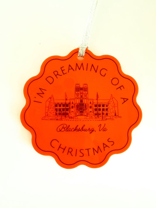 Blacksburg, VA Virginia Ornament - Orange and Maroon - Acrylic Scalloped Ornament