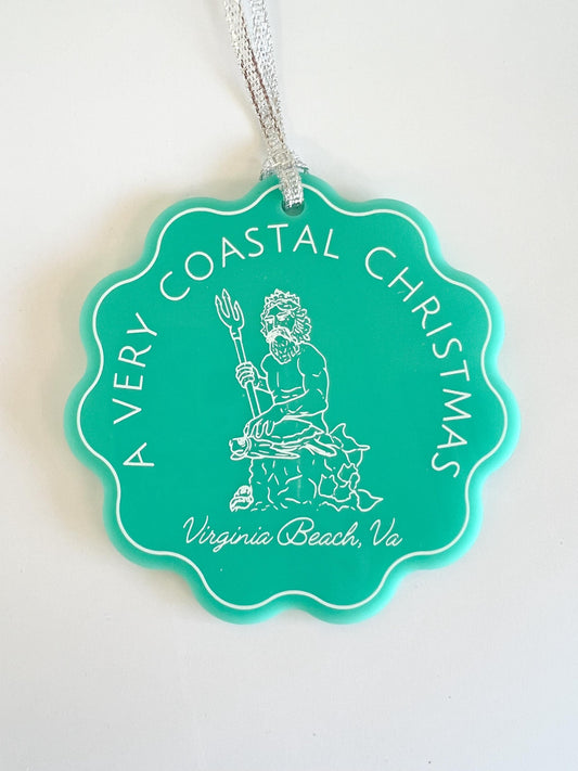 Virginia Beach, Virginia Christmas Ornament - teal Acrylic Scalloped Ornament