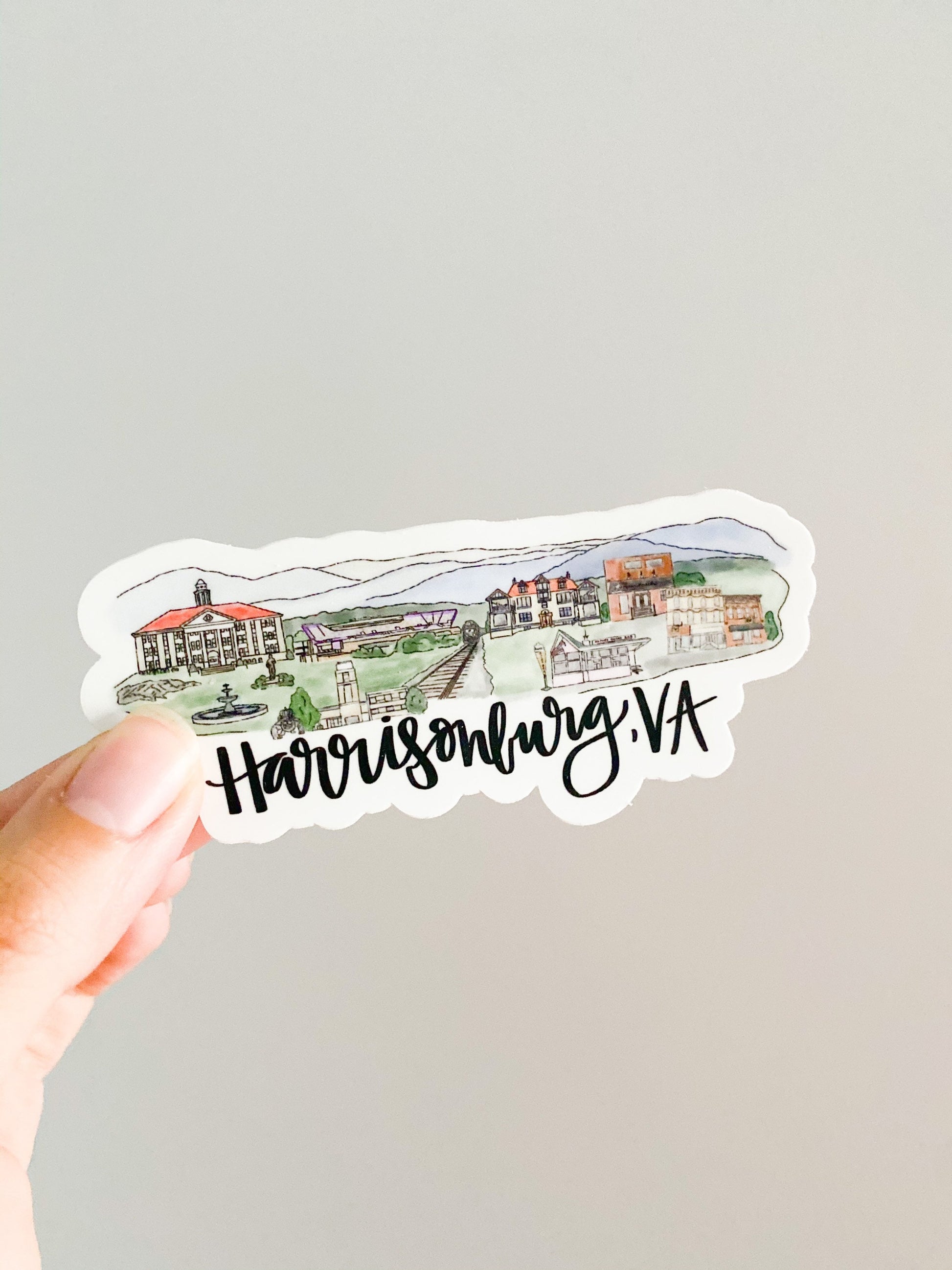 Share your love for Harrisonburg , Virginia with this beautiful digitally drawn skyline sticker. This sticker is ~2x5in. It is made of high quality vinyl and water/weather/dishwasher safe.