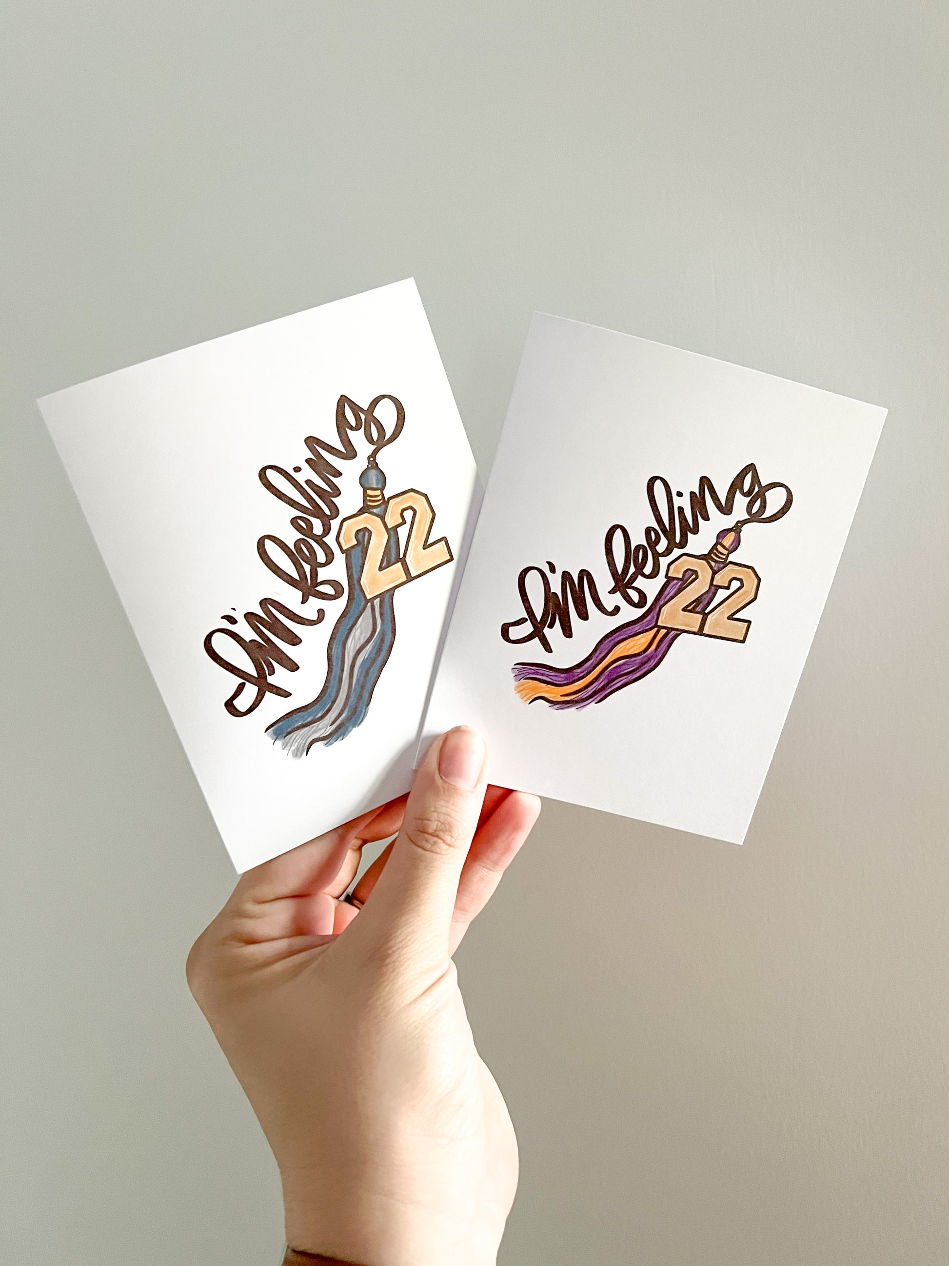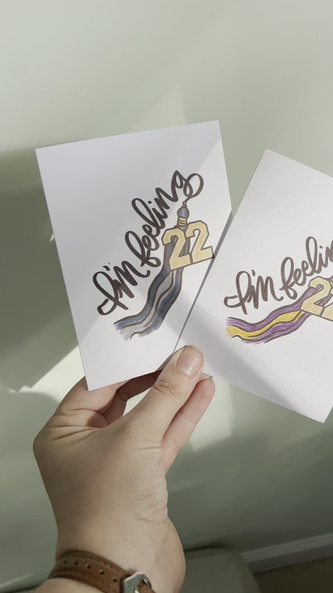 A fun card for your 2022 grad with a play on Taylor’s “Feeling 22” song. This is an A2 sized greeting card that is blank inside. Tassel is availin any school color!! Just message me the colors you would like at checkout!