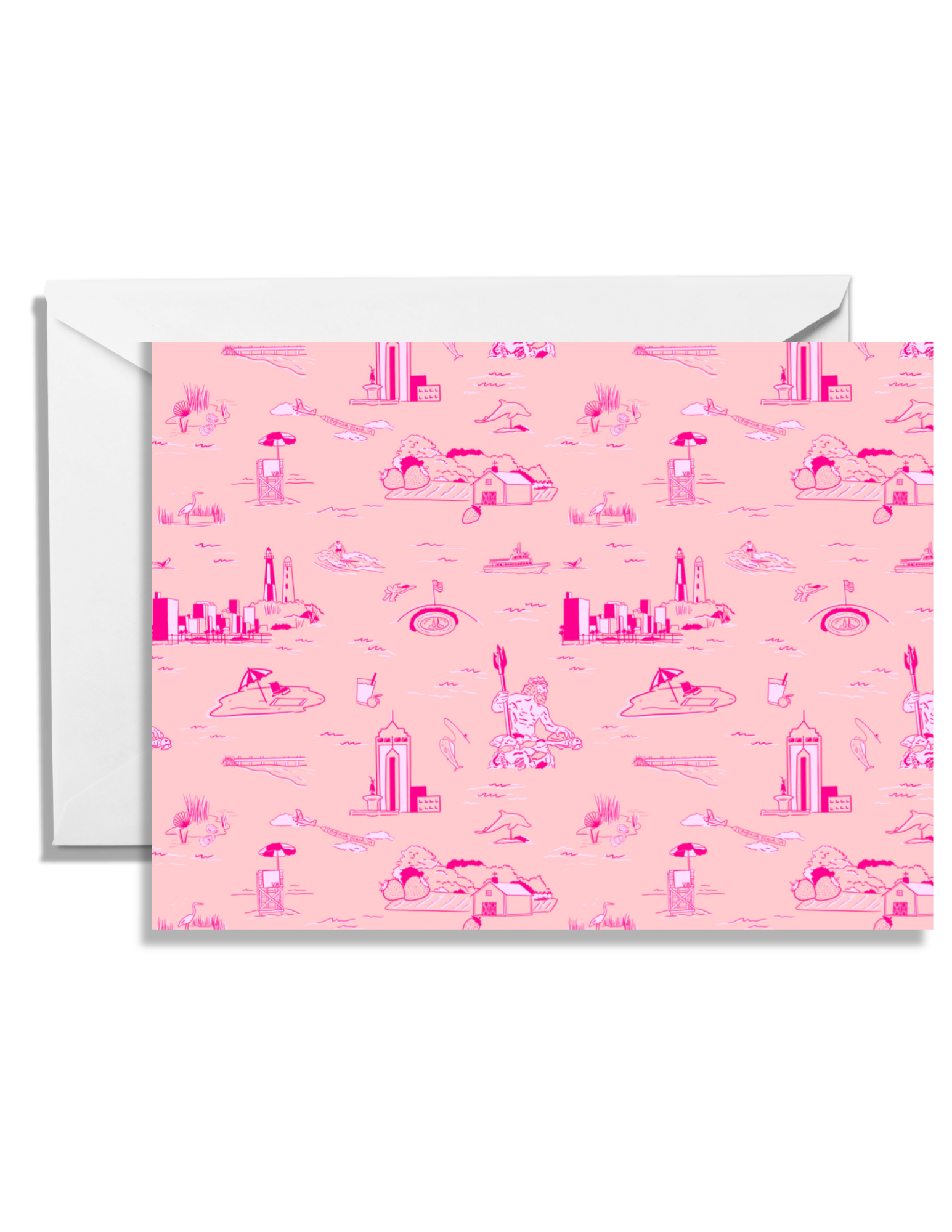 Virginia Beach, Virginia Toile Print Notecard set (5) Pink on Pink pattern